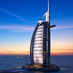 在迪拜王储的提议之下,知名企业家Al-Maktoum 投资兴建了美仑美奂的Burj Al-Arab酒店。酒店建在海滨的一个人工岛上,是一个帆船形的塔状建筑,一共有56层,321米高酒店的豪华程度令人叹为观止。